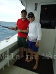 Foi muuuuito bom, e valeu muito a pena!!!! No final ainda, a equipe do barco, que é mais experinte, ficava com uma vara montada na parte traseira do barco, e quando fisgava um peixe bem grande, chamava o pessoal para trazê-lo até o barco e curtir como é pescar um dos grandes!!! O Ro pode curtir uma briga boa com um peixe “Macheral Spanish”… mas quando chegou perto do barco ele escapou porque estava fisgado pela lateral… ahhhh… mas ele disse que foi incrível a briga!!!!