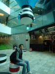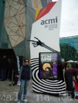 Tomamos café no hotel mesmo para não perder tempo de procurar um lugar mais barato… saímos do hotel e começamos nossa caminhada costumeira. Fomos direto pelo passeio do Yarra River ao Federation Square, que era o nossa principal vontade de conhecer. Uau… (olha o “uau” de novo aqui!! rss)… É muito lindo mesmo!!!! Ah, estava lotadooooo de gente por causa de uma competição de corrida que estava acontecendo (é domingo). Descemos em um dos prédios, o Australian Center for the Moving Image, onde tinha uma exposição do Tim Burton… adorei… incrível! Tem uma exposição fixa também sobre o cinema, televisão e tudo ligado à imagens… é fantástica! Tinha até um Atari (aquele videogame suuuper antigo).