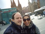 Depois fomos passear pela cidade e já começou a chuvinha… tava demorando né… mesmo assim, continuamos “firmes e fortes” (e molhados)… No fim da Swanston St. pegamos um ônibus de turismo, porque a chuva apertou… fizemos uma volta pelos principais pontos turísticos da cidade… este ônibus é de graça (chama-se “tourist shuttle”), assim também como um trem de turismo – aproveite se estiver por aqui!!!