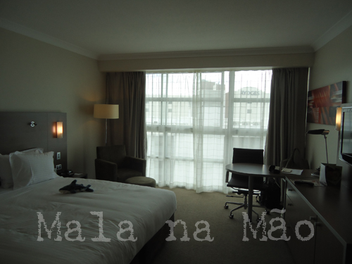 A janela e a vista são um caso a parte, e pouco explorados pelo site do hotel… uma janela gigante (de parede a parede – do piso ao teto) e a vista lateral era para a praia… o que mais poderíamos querer, não é? Simplesmente não acreditávamos na benção que era tudo aquilo! Parecíamos crianças! Você pode ver a descrição da nossa alegria neste outro post.