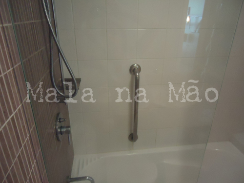 No quarto tinha uma cama suuuuper fofa e gigante, poltrona, mesa de escritório, tv, e dentro do móvel um frigobar. No banheiro uma banheira sem hidromassagem, mas que já fez nossa alegria! Até os itens de higiene (shampoo, sabonete líquido e creme) eram personalizados e muito cheirosos.