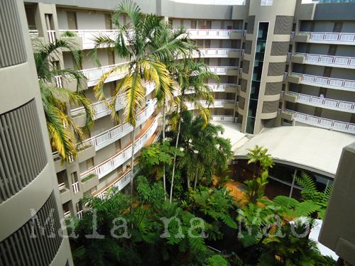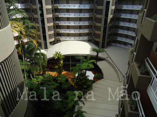 Logo que entramos vimos um saguão bem grande, com sofás bem confortáveis e sentimos um perfume delicioso e fresco – sempre que entrávamos no hotel davamos aquela suspirada maior… rss. No meio do hotel tem um jardim tropical muito bonito, com pequenos lagos artificiais e peixes grandes.