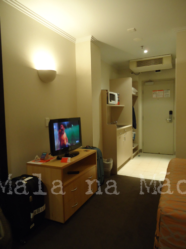Igual ao de Sydney, é um hotel simples, mas com boas facilidades como: cama confortável, sofá, mesa para refeições, pequena cozinha com pia, geladeira e microondas, serviço de arrumadeiras para os quartos, e lavanderia para hóspedes com máquina de lavar e de secar que, quando estivémos lá, custava 2 doláres para cada uso.