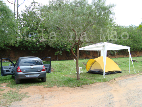 Compramos um toldo para cobrir a barraca – em dias de chuva ajuda bastante, porque quando aperta, pode pingar água dentro da barraca!