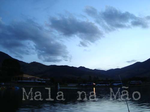 Chegando lá ficamos mais maravilhados ainda! O local parecia um cenário de tão perfeito… montanhas por todos os lados, um lago que refletia a luz do sol brilhando, pássaros cantando… e quando paramos o carro perto da recepção podíamos ver os grandes peixes que haviam no lago láaaa embaixo (já ficamos animados por causa da pescaria – é lógico que levamos todo nosso aparato de pesca!)