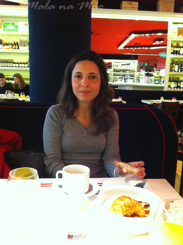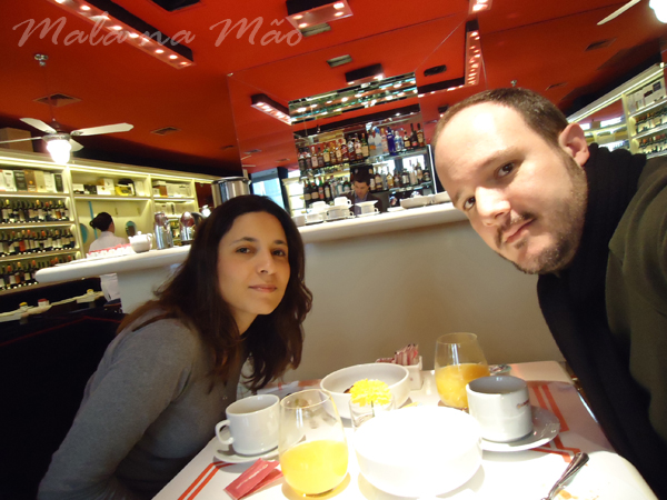 Caprichamos no visual “inverno bem frio” e descemos para tomar café da manhã – no térreo do nosso hotel. O restaurante é bem bonito e o café foi simples, mas bem suficiente: café, leite, chá, suco, pão de forma tostado, medialunas (nosso croissant), manteiga, requeijão e doce de leite. E tá muito bom!