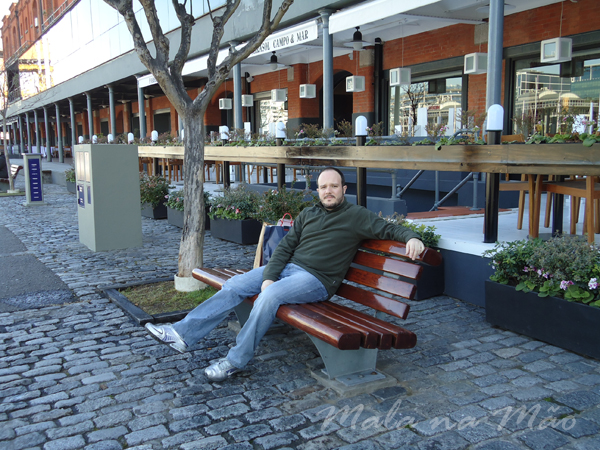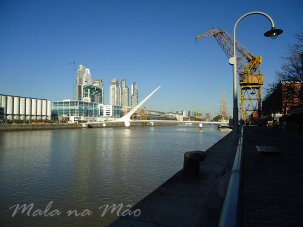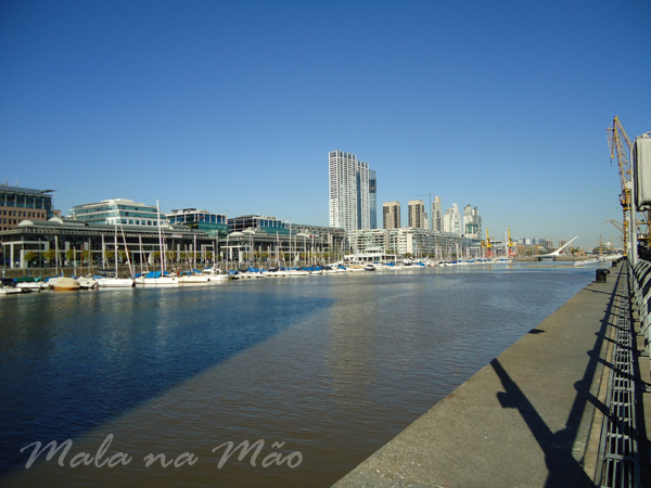 Caminhamos até o Puerto Madero, aproveitando que estava um lindo dia de sol (e frio! ahahah). Hoje nem usamos nossas toucas e luvas – um super casaco resolveu o problema! Fomos até lá pela Rua Viamonte. Puerto Madero parece outro lugar… não lembra o que vimos ontem (!). Com prédios modernos, espaços amplos, jardins… uma graça. Apesar de ser segunda-feira, estava bem vazio… alguns poucos executivos passando por lá, alguns poucos turistas, restaurantes na sua maioria fechados à tarde.