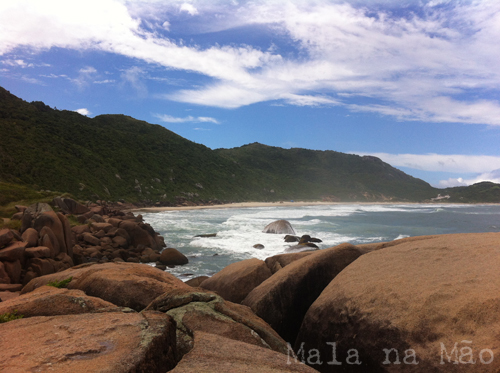 Passamos em Jurerê Internacional, que tem prédios e casas super bacanas. A praia é grande, mas estava vazia, e o tempo não estava muito bom. De qualquer forma, não é o tipo de praia que gostamos.