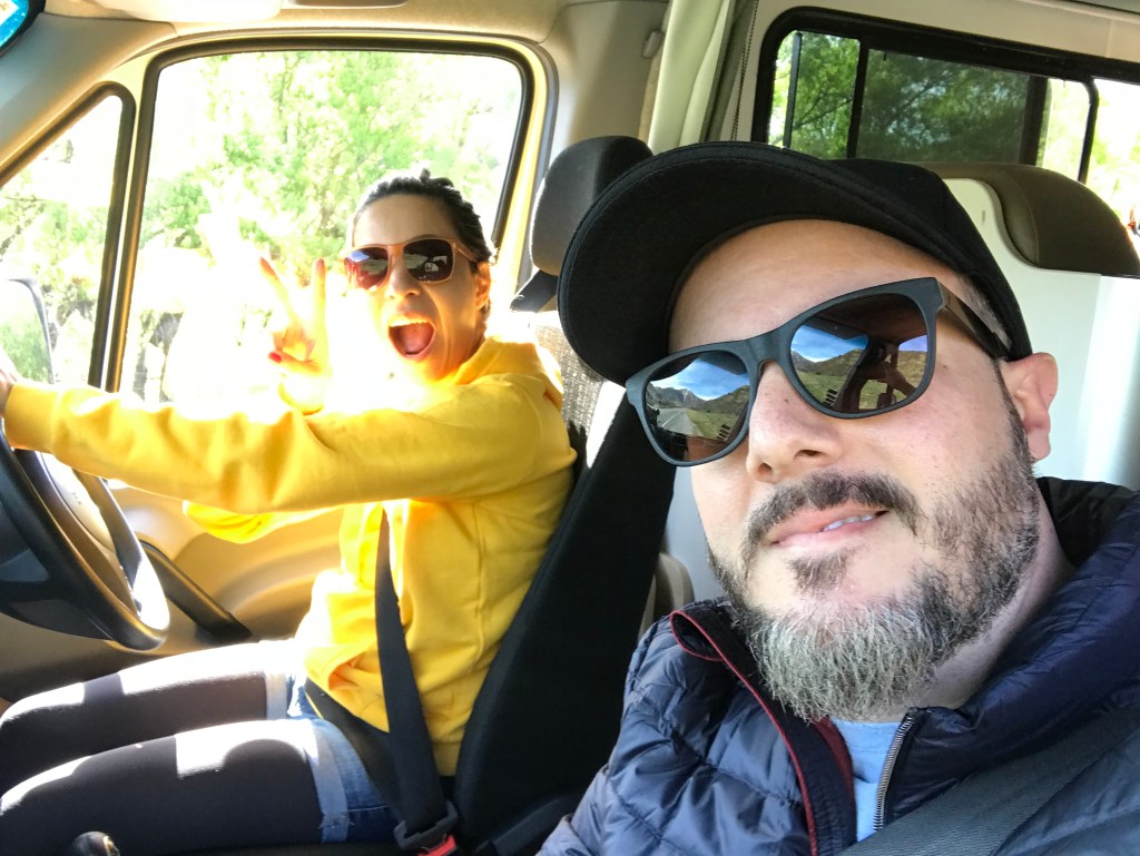 Tomamos café ao ar livre (na campervan tinha um conjunto de mesa e cadeiras para usar do lado de fora!), e depois de entender algumas questões do carro, começamos a rodar!