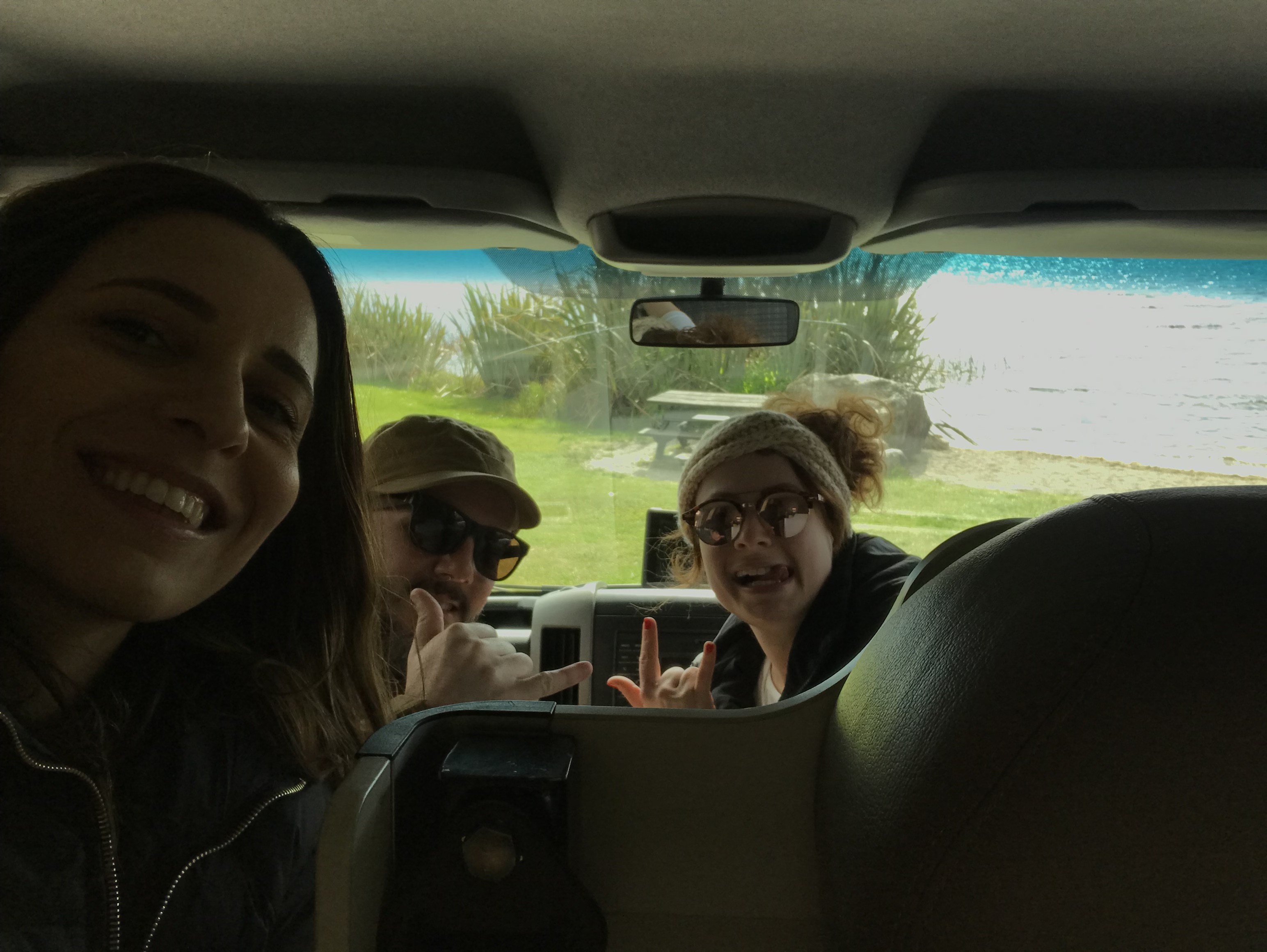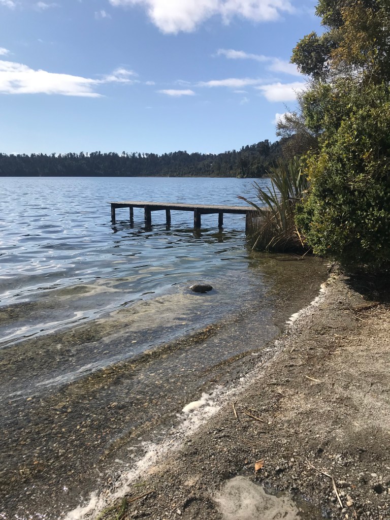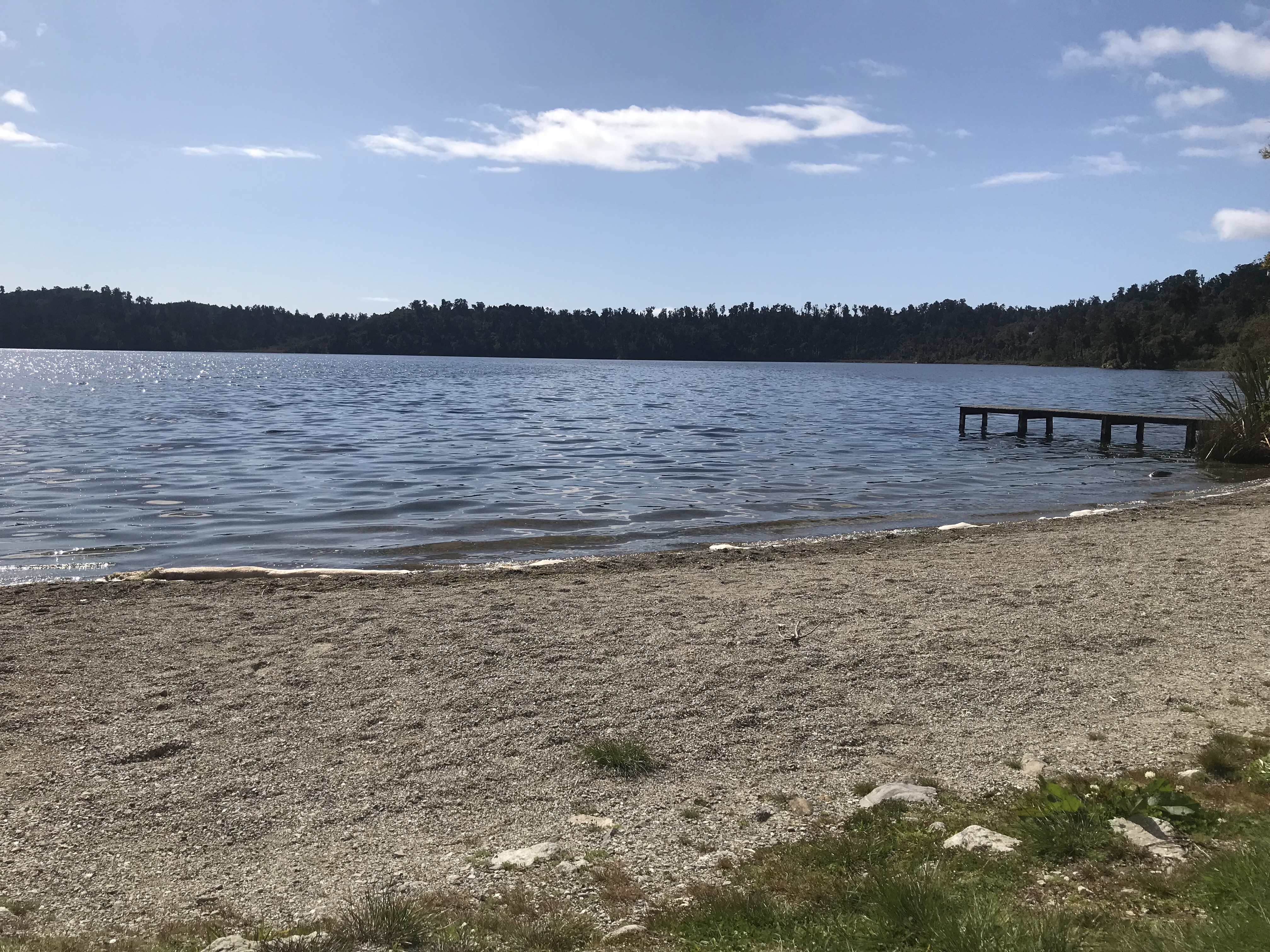 Na estrada, paramos no Lake Ianthe e acabamos conhecendo um homem que estava lá pescando em um barquinho (para nossa surpresa, “um local”!!!), junto com seu cachorro. Ele foi super simpático e quis conversar um pouco com a gente! Ele disse que plantava coisas na sua casa para comer, cria gado para consumo próprio, e era açougueiro (acho que antes de se aposentar). A mulher dele era arquiteta, mas ele disse que ela provavelmente não contrataria alguém tão “good looking” como eu para trabalhar com ela! hahahahaha