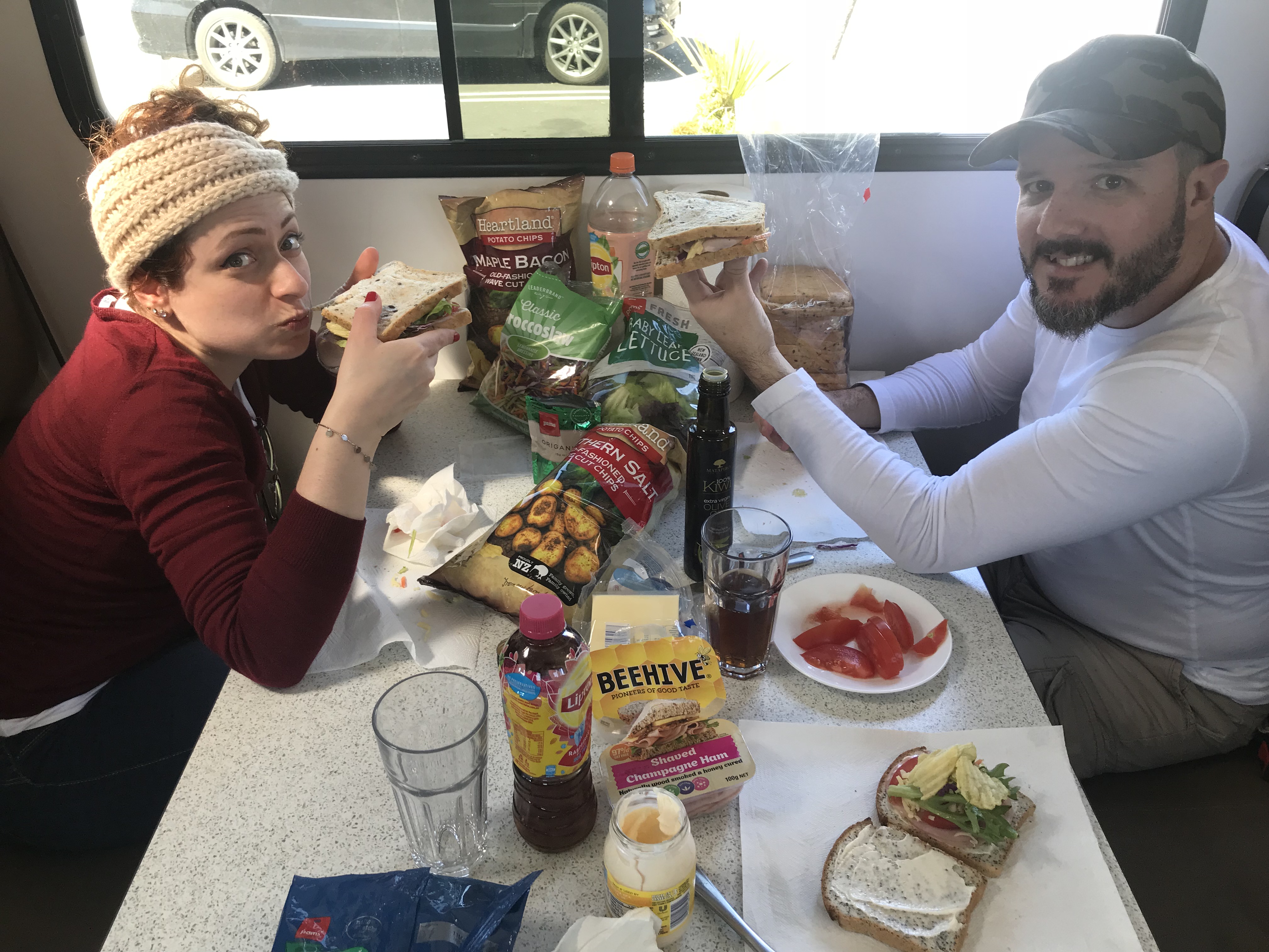 Paramos em Hokitika para abastecer e ir ao mercado… acabamos fazendo nosso almoço no estacionamento do mercado… qualquer lugar com o carro parado era o suficiente para cozinharmos!