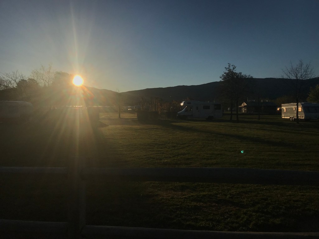 No fim do dia, depois de muita estrada, chegamos no Cromwell Holiday Park, onde passamos a noite com a campervan.